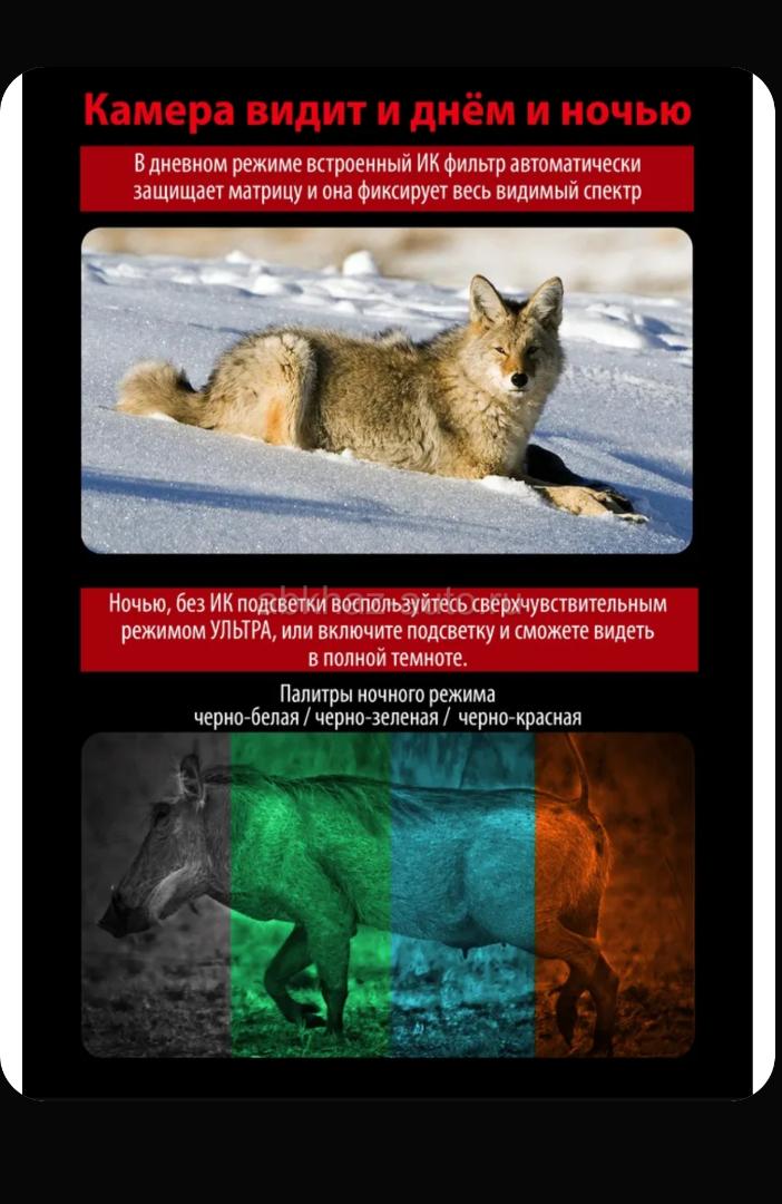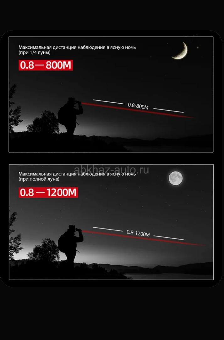 Дополнительная информация: Ясной лунной ночью даже без подсветки видно в пределах до 1000 м, а в темноте с подсветкой можно разглядеть зверя на расстоянии 200...600 м