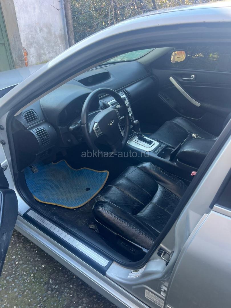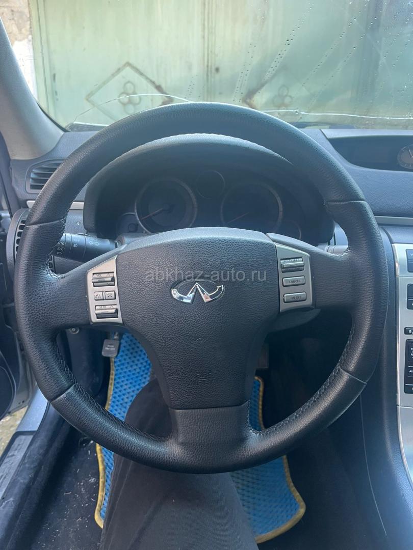 Двигатель: бензиновый, 3.5 л Трансмиссия: автоматическая Кузов: седан Цвет: серебристый металлик Пробег: 80000 км Год выпуска: 2006 Регион: Сухум Дополнительная информация: Мотор меняный от фуги покупали в Ростове 3.5 пробег был 63т сейчас около 80т Был удар на правую сторону в фару до мотора не дошел Коробка на холодную пинает при езде не замечал.за коробку не отвечаю. Американец левый руль не перекидал. Салон кожа, есть люк. Бампер передний лежит не знаю можно его делать или нет. Машина на ходу ездит каждый день по делам. ВНИМАНИЕ гидравлика не работает