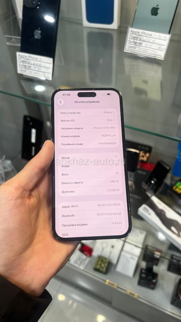 Дополнительная информация: Звонить писать сюда:❗️999-30-10❗️ Продаю айфон 14 Pro Max состояние идеал ! Память:256gb Акум:88% Телефон весь в оригинале ! Без ремонтов и вскрытий ! Без сколов и трещин ! В наличии большое количество телефонов! Наш адрес г.Гагра ул.Сосналиева 1, чуть ниже светофора в городе ! Рядом с медовым отелем ! Так же занимаемся услугой Трейд-Ин (обмен старого на новый)! Наклеем защитное стекло , аксессуары и многое другое ! Так же доставляем новый телефоны в течении дня! Есть доставка по Абх ! ❗️24/7❗️ Instagram:t—mobile___