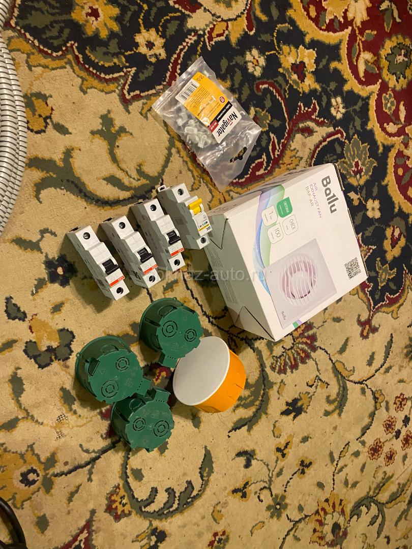 Дополнительная информация: 1. Автоматы электрические - 4 шт Новые , остались после ремонта 2. Кабель электрический -3х жильный Медный ГОСТ - 2 вида Кабель новый электрический привозил из России для ремонта - 2 вида -3-х жильные оба 3 * 2, 5 длина около 30 метров и 3 * 1,5 длина около 10 метров осталось после ремонта 2. 1. Автоматический выключатель новый - 3 шт АВВ - Германия 25 Ампер ; 2. Автоматический выключатель новый - 1 шт IBK - Китай 16 Ампер 3. Гофра для проводки кабеля - 50 м 4. Порозетники - 4 штуки 5. Вентилятор Новый в коробке для кухни или ванной в вентиляционную шахту 6. Скобы для быстрого и надежного крепления проводов - 1 упаковка новая - 50 штук осталось после ремонта Цена за все