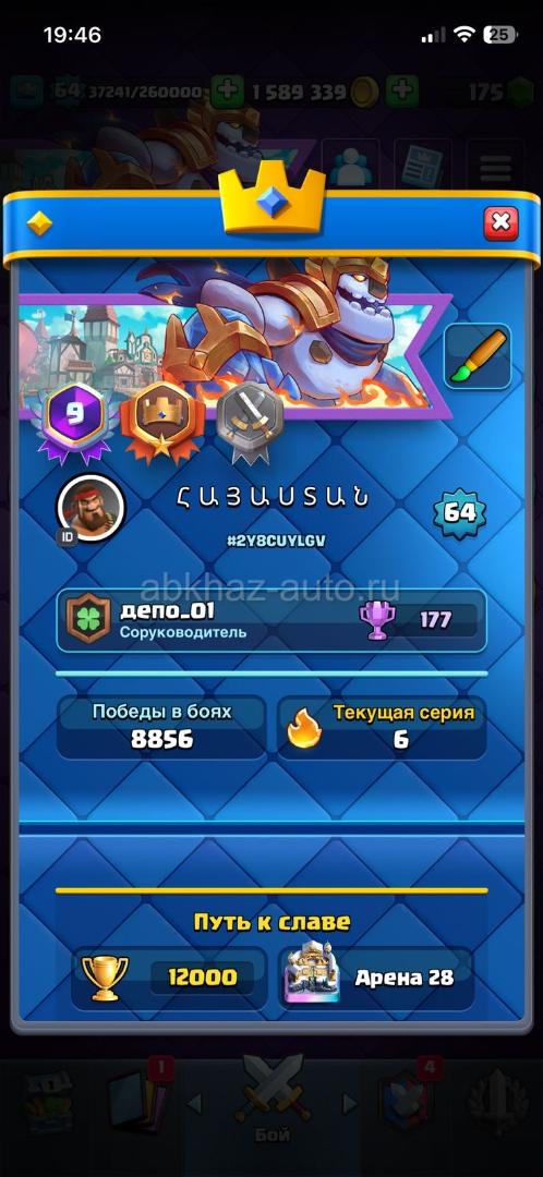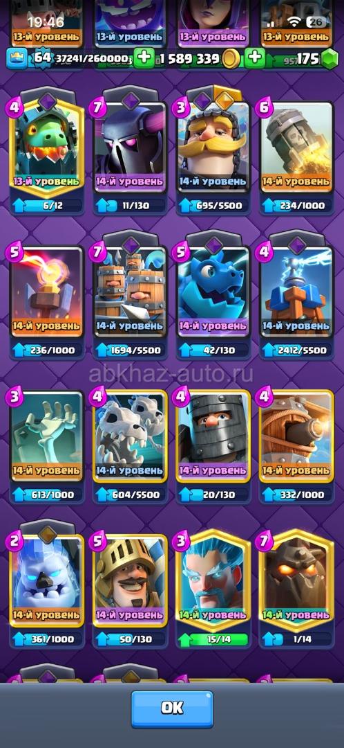 Дополнительная информация: Старый аккаунт 9 лет игры. Топ 1 Абхазии 12000 кубков , абсолютный чемпион. Карты хорошо прокачены, писать звонить по номеру , торг реальный клиентам