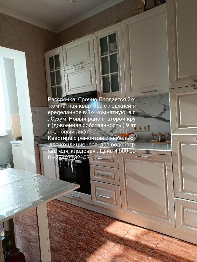Дополнительная информация: Срочно! Рассрочка! Рассрочка на полгода! Продается 2-х комнатная квартира с лоджией переделанное в 3-х комнатную в г. Сухум, Новый район, второй круг (довоенная собственность ) 9 этаж, новый лифт Квартира с ремонтом и мебелью, два кондиционера, два водонагревателя, кладовая . Цена 4 000 000 +79407732103