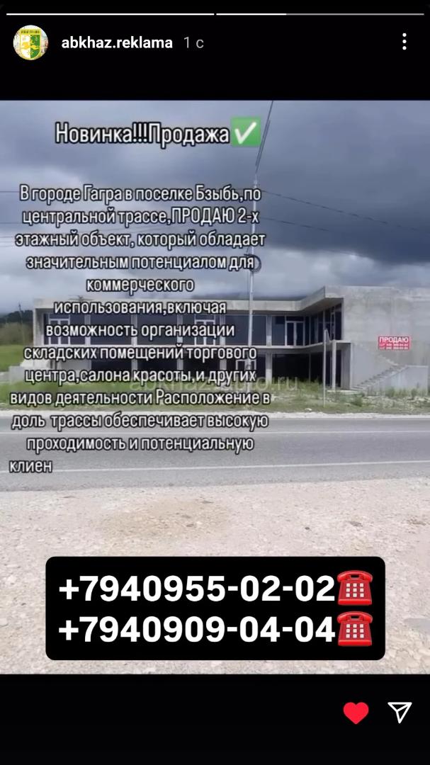 По трассе на Рицу продается 7 соток и здание 300кв/м