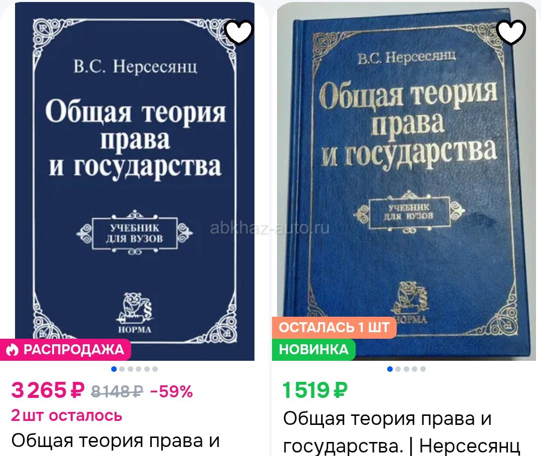 Дополнительная информация: Продаются книги по Юриспруденции - Теория государства и права ,историческая и др. литература . Состояние новых! Для сравнения какие цены сейчас на эти книги! Цена у меня 800 р за 2 шт % !