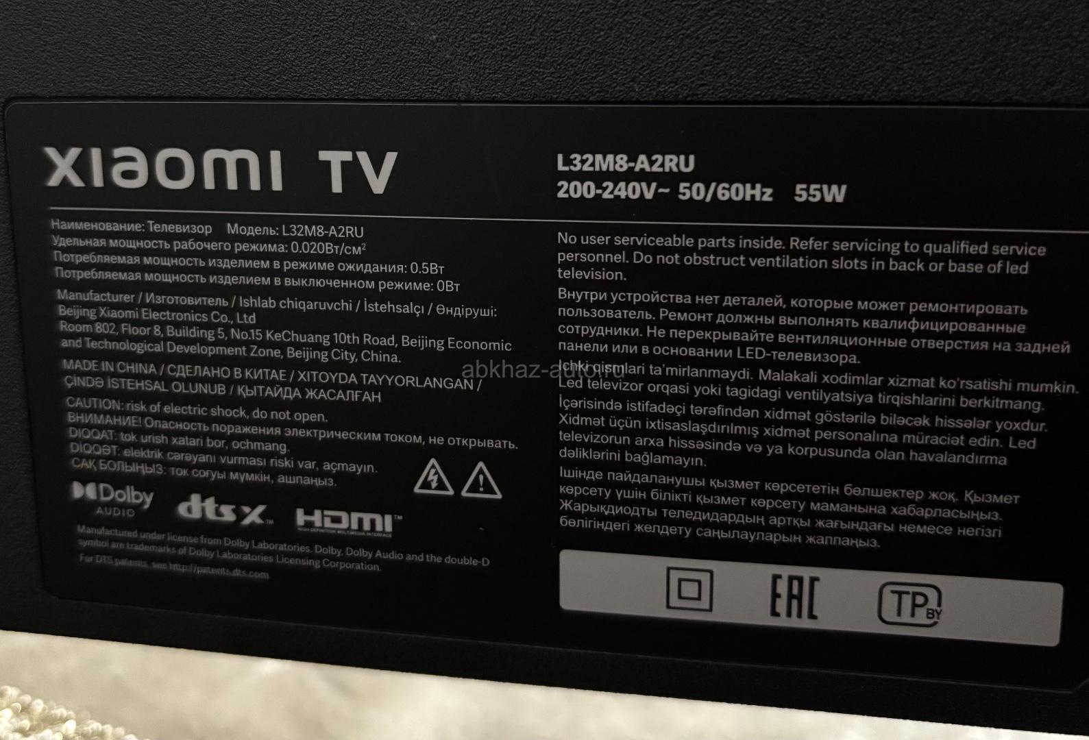 Дополнительная информация: Продаётся телевизор Xiaomi TV L32M8-A2RU. 32 дюйма. Встроенный Wi-Fi. Г. Сухум. Цена 15 тыс. Звонить и писать по этому номеру тел. +79409919271
