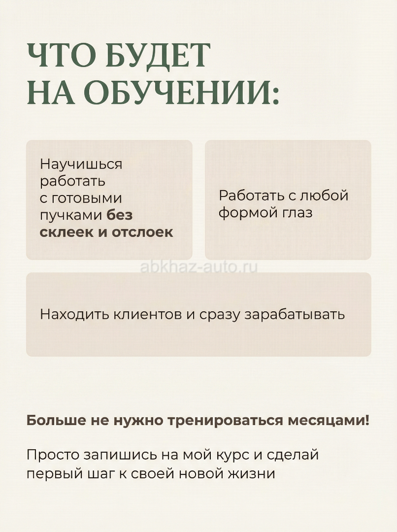 Дополнительная информация: Если ты устала от работы в гостинице, ресторане, где ты не принадлежишь себе! Если тебе нужен дополнительный доход , чтоб не просить у мужа на «трусики и бусики « 😀 Если тебе не хватает творчества и рукоделия, которое приносит доход ! Тогда мой УНИКАЛЬНЫЙ ГИБРИДНЫЙ базовый курс « Ресницы-легко» именно для тебя 🤗 Я научу тебя новой профессии LASHMAKER! Тебе не нужно будет стажироваться 1-6 месяцев , чтоб зарабатывать от 60к Это время прошло! Так учили в 2020 ( Я сама прошла этот путь ! И считаю, что это уже все устарело! Нужно учить по новому ! Я научу тебя работать с готовыми пучками 🙌 и любой обьем тебе будет «ЛЕГКО» !!! Мой курс построен так! Ты приходишь ко мне, на БЕЗОПЛАТНЫЙ УРОК ! на котором я все расскажу про свой Уникальный Гибридный курс ! И ты сразу поймешь для тебя ли эта профессия! Для тебя будет приготовлен набор для обучения, который ты забираешь домой . Добавляю тебя в группу и ты дома, уже начнешь учиться по моим видео урокам в группе ТГ , где ты будешь получать домашнее задание . Ты уже будешь учиться ! Затем мы назначаем дату обучения! 2дня =2 модели плодотворной работы После обучения ! Ты уверенно , без страха будешь выполнять работу , на любых формах глаз 👁️ Делать любые объемы ! Научу подбирать эффекты! Научу находить клиентов! Научу делать красивые фотографии! Сделай первый шаг к своей новой жизни ! Пиши «БАЗА» 🙌