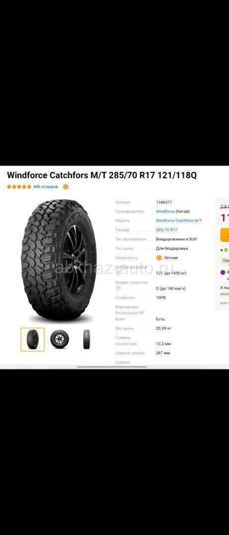 Дополнительная информация: Продам шины Windforce Catchfors M/T 285/70 R17 121/118Q. Покупались недавно. Проехал на них 200-300 км. Состояние новых. Никаких повреждений нет. Покупались за 45 тыс. руб. (без учета доставки) Отдам за 35 тыс. руб. Отзывы по данной шине: https://mosautoshina.ru/catalog/tyre/windforce/catchfors-m-t/285-70-17-121-Q--118/