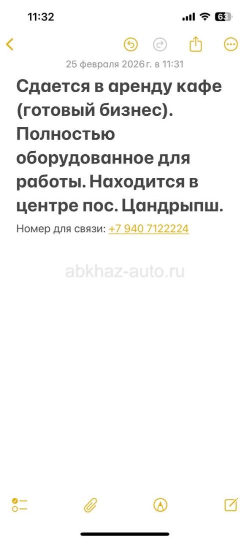 Дополнительная информация: Сдается в аренду кафе (готовый бизнес). Полностью оборудованное для работы. Находится в центре пос. Цандрыпш. Номер для связи: +7 940 7122224