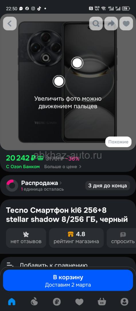 Продам. Телефон. TECNO страйк 30 8+8 256