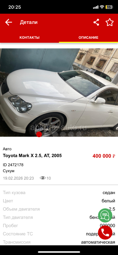 Двигатель: бензиновый, 2.5 л Трансмиссия: автоматическая Кузов: седан Цвет: белый Пробег: 180 км Год выпуска: 2005 Регион: Сухум Дополнительная информация: S пакет , кожаный салон с подогревом сиденья , масло не кушает ! Продаю срочно , звонить и писать на ватсап 9434417