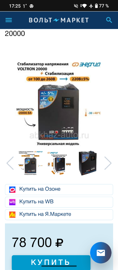 Дополнительная информация: Стабилизатор Энергия VOLTRON - 20 000 Не вскрывался, на пломбах, состояние нового (коробки , инструкции, чеки)все работает исправно, любые проверки Причина продажи, поставили трансформатор на всю улицу, теперь стоит без дела Цена без торга 35000 т.р более чем адекватная, покупал в 2 раза дороже, модель называется Энергия VOLTRON - 20 000 Е0101-0162 ( всю инфу смотрите в интернете) Связь Вотсап/Телеграмм +79996574501