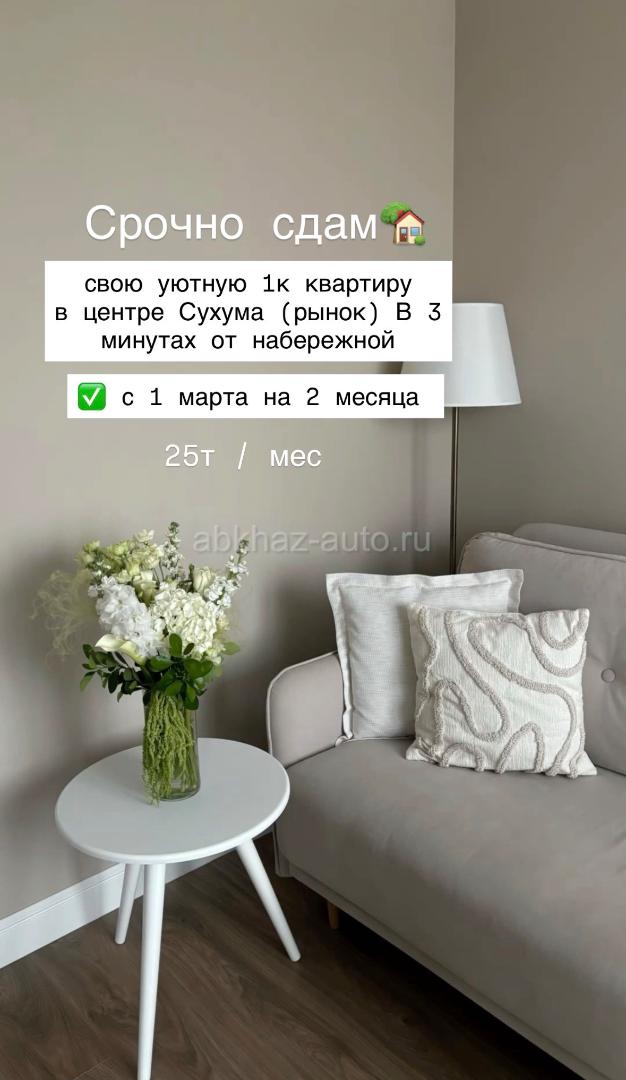 Дополнительная информация: ✅ сдаю 1к квартиру в центре Сухума (рынок) на 2 месяца с 1 марта Уютная, чистая, светлая , до набережной 3 мин, сдается для одной девушки Писать в лс или ватсап +7 908 280-73-31