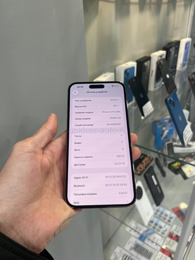 Дополнительная информация: В наличии Айфон 14 Pro Max Память 256gb Акум:84% Телефон в отличном состоянии, любые проверки на месте ! • В НАЛИЧИИ БОЛЬШОЕ КОЛИЧЕСТВО ТЕЛЕФОНОВ • Все устройства проверены перед продажей • Предоставляем услугу Trade-In: вы с выгодой можете заменить старый смартфон на новый • Создаем аккаунт Apple ID прямо на месте • Устанавливаем защитное стекло сразу после покупки • Устанавливаем банковские приложения (Т-Банк, Сбербанк) • При покупке смартфона гарантирован подарок 🎁 ⎯⎯⎯⎯⎯⎯⎯⎯⎯⎯ 🚗 Доставка любого телефона менее чем за сутки 📌 Доставляем б/у и новые модели 📌 Доставляем по всем городам Абхазии ⎯⎯⎯⎯⎯⎯⎯⎯⎯⎯ 🔴 Магазин расположен в городе Гагра, ул, Сосналиева 1 Контактный номер: +7 (940) 999-30-10 Наша соц. сеть Instagram: @t_mobile_____ Мы работаем 24/7 без выходных По всем интересующим вопросам звонить по телефону 📞