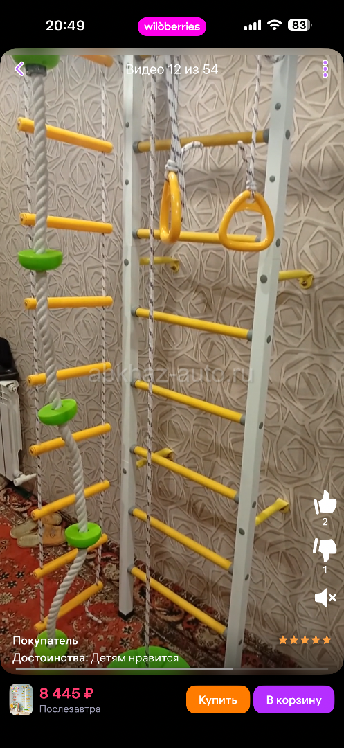 Дополнительная информация: Продается шведская стенка, выдерживает до 100кг, прилагается баскетбольное кольцо, груша) в идеальном состоянии) цена 9000₽ торг уместен Тел: 992-09-36