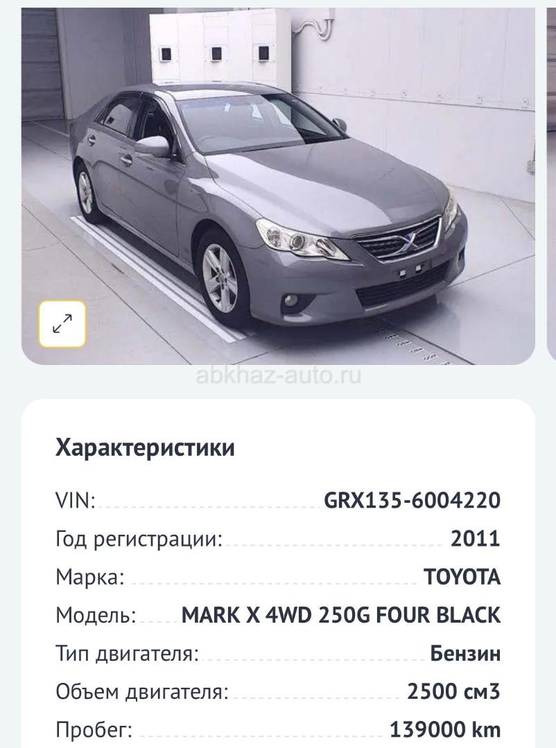 Двигатель: бензиновый, 25 л Трансмиссия: автоматическая Кузов: седан Цвет: серебристый металлик Пробег: 139 км Год выпуска: 2011 Регион: Гагра Дополнительная информация: Машина только что приехала в идеале машина Звонить по вадцапу