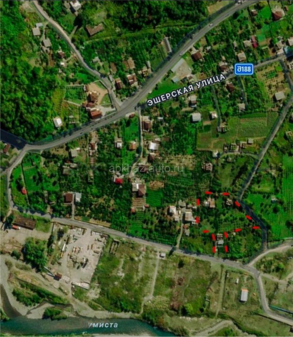 Дополнительная информация: Продается три совмещенных земельных участка с тремя ветхими домами и садом в селе Ачадара. Участок находится от 300 м до государственной трассы. Общая площадь территории составляет 76 соток. ВНИМАНИЕ: Участки продаются вместе, не по отдельности. Адрес: Сухумский район, село Ачадара, Эшерский проезд. КРАСНЫМ отмечена общая территория участков. ФИОЛЕТОВЫМ отмечены границы участков (забора там нет). СИНИМ отмечены заезды в участок. Номер телефона: +7940 770 34 31, +7940 771 56 76