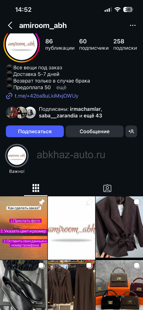 Дополнительная информация: Добро пожаловать в интернет магазин @amiroom_abh. Место, где мода встречается с комфортом. Мы предлагаем уникальные коллекции, которые помогут вам выразить себя. В нашем каталоге вы найдете все: от базовых футболок и удобных джинсов до элегантных платьев и трендовой верхней одежды. Обновите свой гардероб прямо сейчас — выбирайте лучшие модели в каталоге!🫶🏻 https://www.instagram.com/amiroom_abh?igsh=MWdxOHdmOGh5aGk3&utm_source=qr
