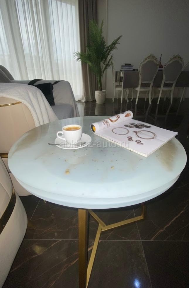Дополнительная информация: Журнальный столик ручной работы в стиле минимализм Изготовлен из эпоксидной смолы Диаметр 50см высота 53см толщина 3см