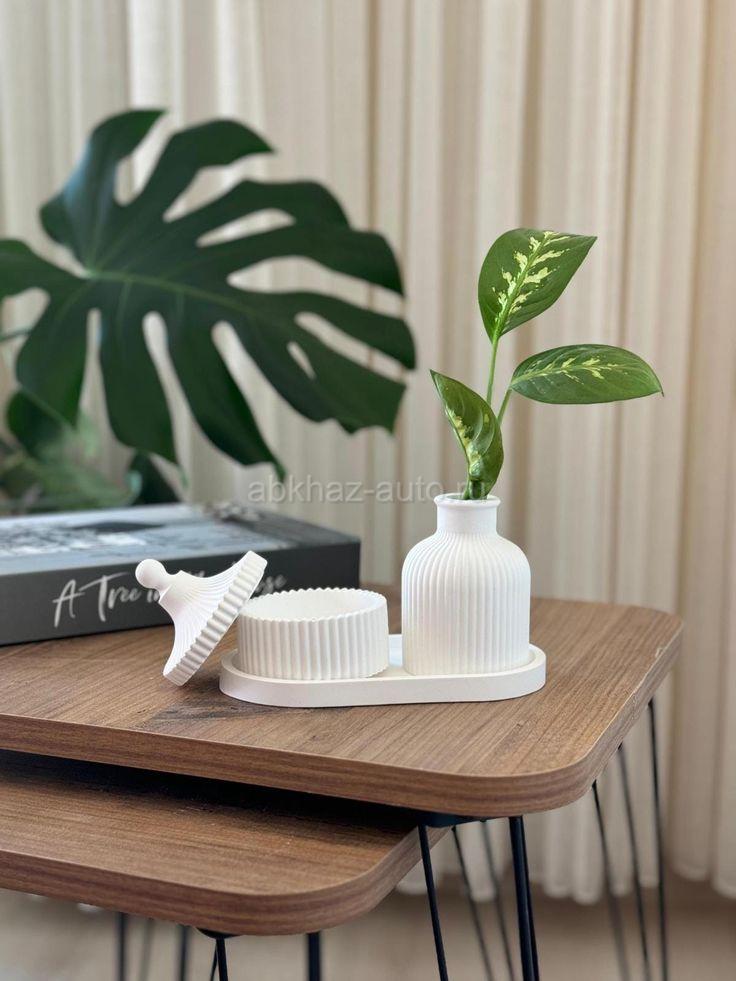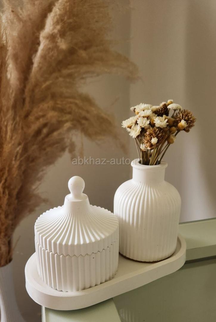 Дополнительная информация: Декоративный интерьерный набор из гипса. Для покупки или заказа пишите в директ или на WhatsApp +7(940)915-59-06 🤍 Instagram @art.gips.abh Состоящий из трех предметов: рельефной вазы для сухоцветов, шкатулки с крышкой и овального подноса-подставки. Применение: Декор для дома, реквизит для предметной съемки или подарочный вариант. Такие наборы пользуются популярностью благодаря минималистичному дизайну и возможности использования как в готовом виде, так и в качестве заготовок для творчества и росписи. Характеристики и особенности Материал: Изделия выполнены из высокопрочного скульптурного гипса. Состав набора: Ваза: Предназначена исключительно для сухоцветов; наливать воду внутрь не рекомендуется из-за пористости материала. Шкатулка: Рифленая емкость с крышкой для хранения украшений и мелких предметов. Поднос: Овальная подставка объединяющая композицию.