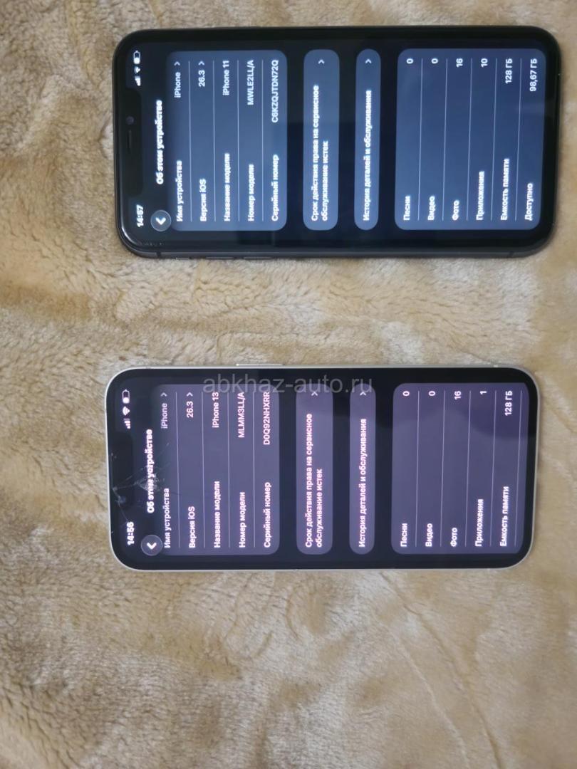 Дополнительная информация: 13 айфон АКБ 90 трутон, фейс работает чисто экран и не большие коцки по бокам 11 айфон АКБ 81 трутон фейс работает не больше царапины на экране и сзади оба на 128 . Обмен на 13 про либо 14 тел +79407766460 только вацап!!!
