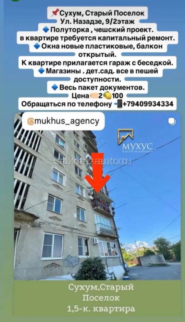 Дополнительная информация: 📣Сухум, Старый Поселок Ул. Назадзе, 9/2этаж Полуторка, чешский проект. в квартире требуется капитальный ремонт. Окна новые пластиковые, балкон открытый. К квартире прилагается гараж с беседкой. Магазины . дет.сад. все в пешей доступности. Весь пакет документов. ЦЕНА🏷️2100000 Обращаться по телефону 📩 ☎️+79409934334