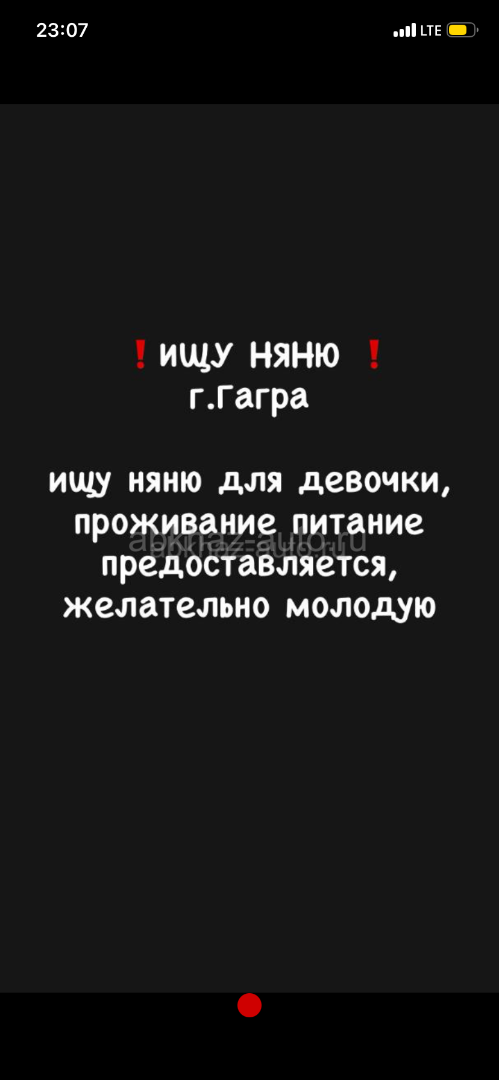 Дополнительная информация: Срочно ищу няню пожеланию питание предоставляется город гагра вотц 9487600