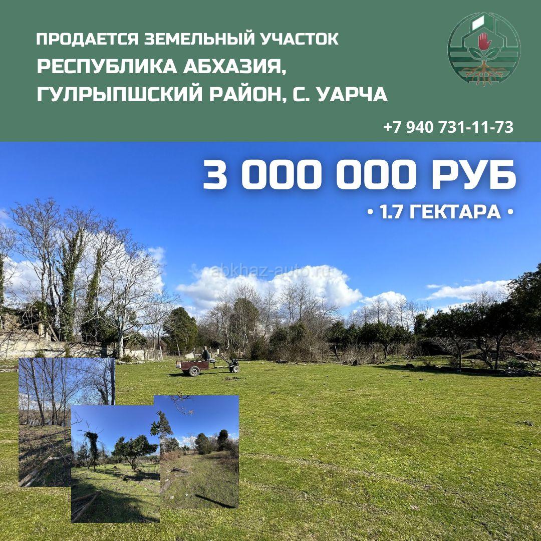 Дополнительная информация: МЕЖДУ РЕЧКОЙ, ГОР И МОРЕМ-не мечта, а реальность! Всего за 3.000.000 рублей! 🔥Продается перспективный земельный участок в Гулрыпшском районе Республики Абхазия (с. Уарча). ✈️Аэропорт рядом. 🚘До столицы Абхазии (Сухум) - 20-30 минут езды на машине. 🌱Площадь: 1.7 гектара. 📍Вся необходимая инфраструктура рядом. 🌊До моря: Всего 750 метров (10–12 минут спокойным шагом). Благодаря большой площади и близости к побережью, это идеальная локация для строительства базы отдыха, эко-отеля или комплекса гостевых домиков🏠 Просторная территория позволяет реализовать проект с ландшафтным дизайном, бассейном и зонами отдыха. 💰Цена: 3 000 000 руб. Документы в порядке. Звоните/пишите для уточнения деталей и организации просмотра! 📲+7940-731-11-73 ❗️Важно: Полное юридическое сопровождение при переоформлении документов. ‼️Возможно приобретение участка частями.