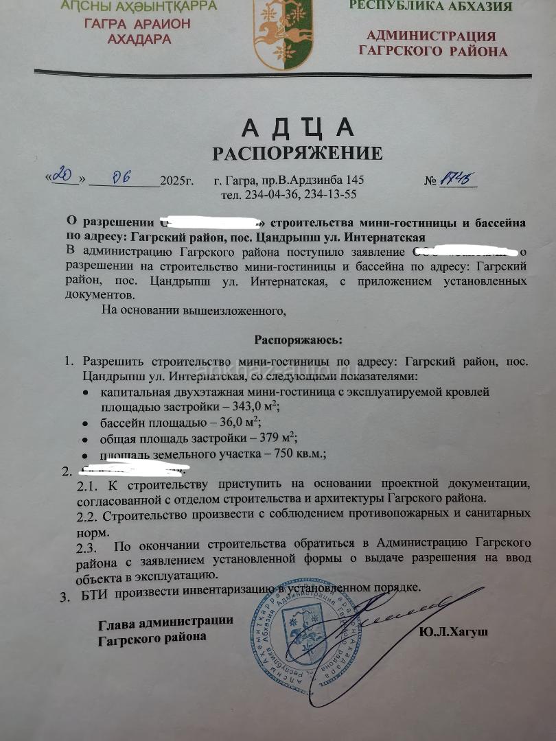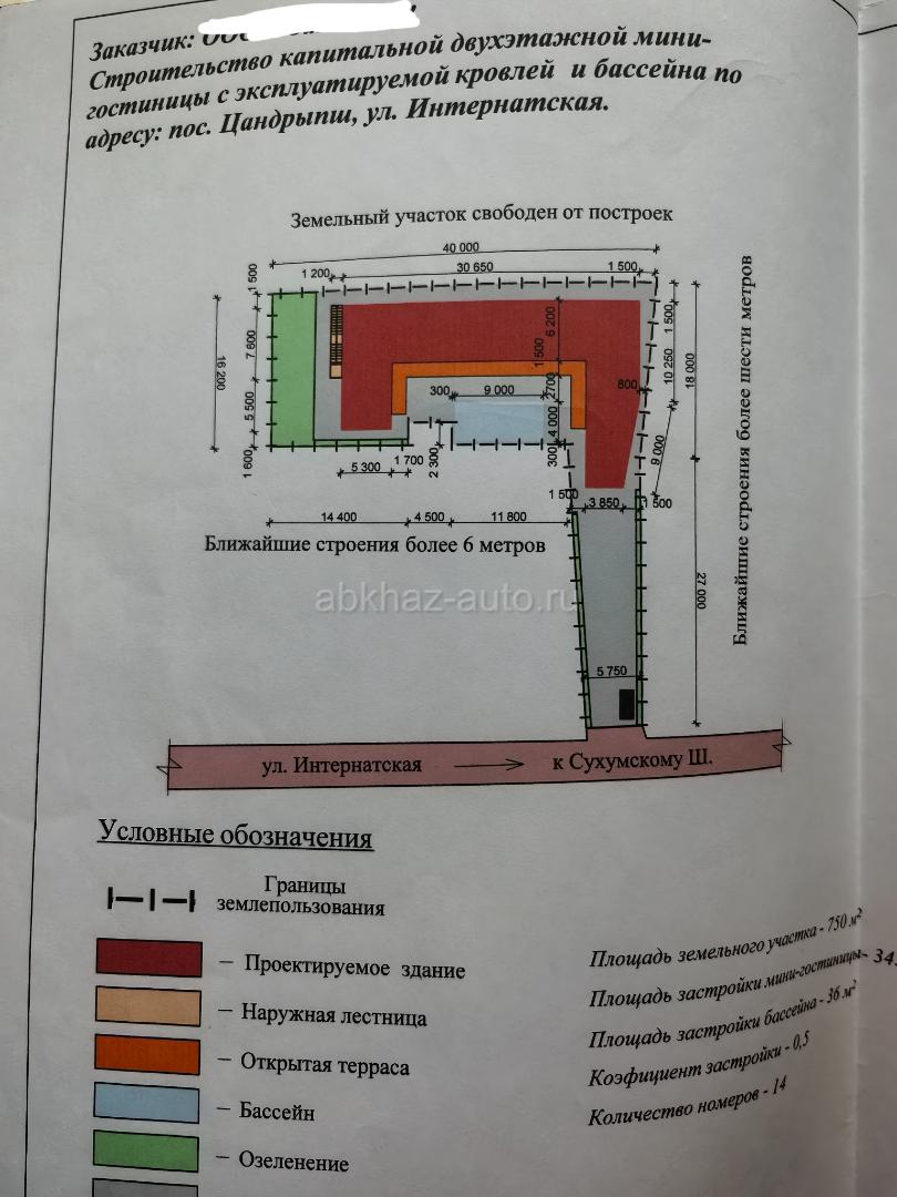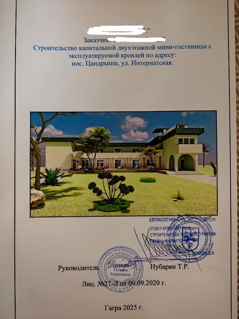 Дополнительная информация: К продаже предлагается коммерческоий земельный участок 9 соток в самом сердце п. Цанрипш. Земля оформлена на Абхазское ООО с директором/учредителем - гражданином РФ. Сделка через оформление ООО на нового владельца ТОЛЬКО ЧЕРЕЗ НОТАРИУСА!!!Сделка чистая и безрисковая с грамотным юридическим сопровождением. Это единственная безопасная и законная схема владения и пользования землёй в Абхазии для граждан РФ. Задолженности по налогам нет Бухотчетность ведется. Расчетный счет обслуживается исправно. Новому владельцу передаём все контакты необходимых лиц для ведения отчётности и сотрудничества. На землю есть все документы: изначальный госакт, распоряжение. Земля НЕ ТРОФЕЙНАЯ и никогда ей не была. Никаких строений там не было. Это выделенный участок от соседнего участка, что создает уверенность в чистоте этой земли! А в Абхазии - это важно. Получено разрешение на строительство мини-отеля с отдельной хозяйственной зоной. С Гагрской администрацией и с архитектурой согласована ВСЯ проектная документация. Имеется подробный проект с визуализацией , который прошёл ВСЁ СОГЛАСОВАНИЕ ПО ЗАКОНАМ И ТРЕБОВАНИЯМ АБХАЗИИ. ВАЖНО! Согласован бассейн. Да, это важно, т.к. в Абхазии нельзя просто взять и вырыть бассейн, как в РФ. Визуализацию можно изменить под свои желания. Разрешения на подключение коммуникаций имеются. Септик на участке. Вода по участку. Столб с электричеством на границе участка. Участок имеет собственный въезд. Подъезд к участку - с 2 сторон с Сухумского шоссе. От границы 5 км. Кроме того, ровный рельеф участка предлагает множество возможностей для ландшафтного дизайна и создания комфортной территории для отдыха ваших гостей. Обратите внимание на потенциал расширения, включая обустройство зоны для барбекю или детских площадок. Проект рассчитан так, что на участке останется место 8х16 для организации "хозяйской зоны" для размещения отдельного дома, мини-бассейна и парковкой с отдельным выездом на другую сторону улицы и ч отдельным входом в зону отеля. Его можно использовать для себя или как люкс размещение. В районе активно ведут свою деятельность гостевые дома, столовые и коттеджные городки. Разрешение на строительство двух этажей и эксплуатируемой крыши (а для этого нужно отдельное разрешение ) открывает широкие возможности для увеличения вместимости и предоставления дополнительных услуг. Очень уютная улица с южными раскидистыми деревьями и цветами. НЕ ПОЛЕ. Участок выровнен. Находится не в зоне подтопления, как на некоторых улицах Цандрипша. Участок расположен в 7 мин от Duty free , который находится на ж/д станции Цандрипш. До моря 8 мин пешком по красивой и широкой ул. Лапстинской, на которой расположены несколько прекрасных современных столовых, магазинов, баров, пиццерий. Удобный выход на пляж. Пляж чистейший, широкий. Море прозрачное, лазурное и ТЕПЛОЕ, т.к. пляж находится в месте, где в море не впадают реки (на карте указан ручей, но, по факту, его там давно нет ). Преимущество - отсутствте склонов и волнорезов. В виду этого, в этом месте купаться и наслаждаться открытым морем с видом на горы и на Гагры - одно удовольствие. Пляж оборудован всем необходимым: закусочные, столовые, бары, шезлонги, беседки, пляжные перголы, сапы. Приобретая данный объект можно сразу начинать строительство, которое в Абхазии м