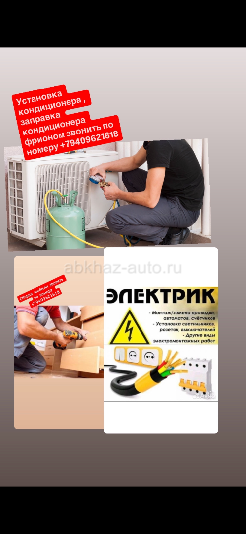 Дополнительная информация: Услуги :электрики , сборка мебели , установка кондиционера звонить по номеру +79409621618