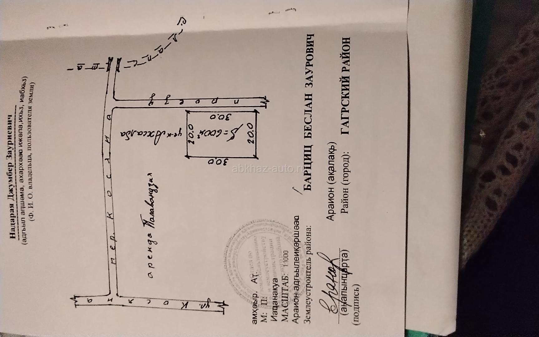 Обмен земельного участка в Цандрыпш, 6 соток , до моря 800 метров , все документы на руках