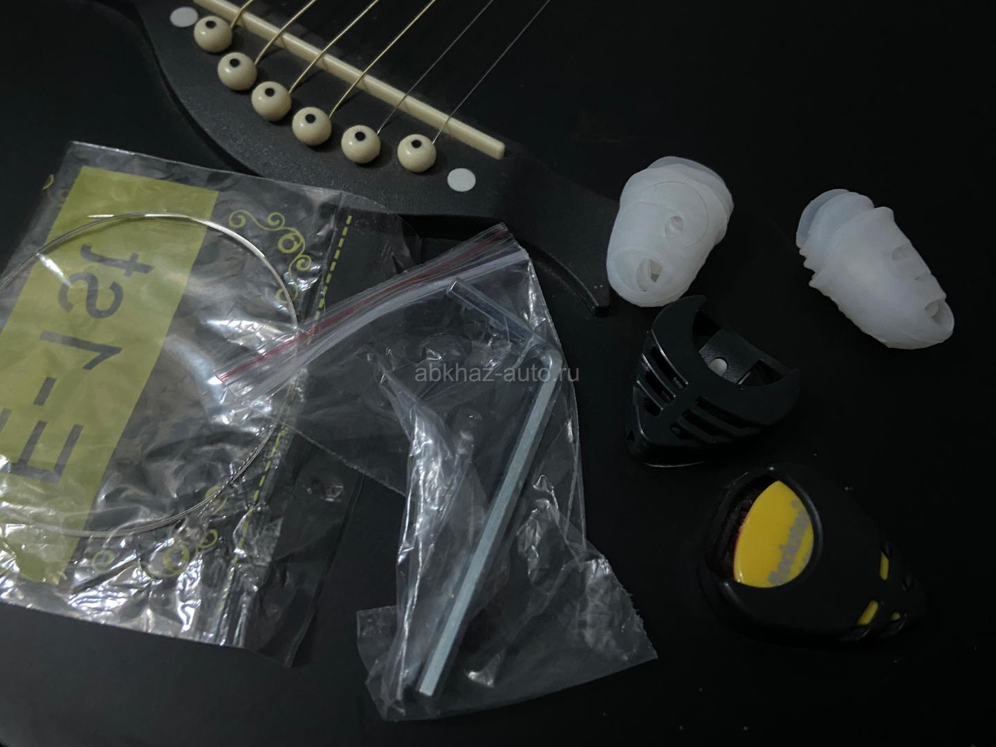 Дополнительная информация: Состояние: есть небольшие косметические дефекты: • лёгкие царапины и потёртости; • пружины с признаками ржавчины (требуют замены/обработки). В комплекте: ремень, дополнительная первая струна, ключ для настройки, напальчники, 3 медиатора и 2 кейса для них Гитара почти не использовалась — подойдёт для начинающих или коллекционеров hand-made инструментов. Цена: 10 000₽ торг уместен Описание Размер: 7/8. • Количество ладов: 19. • Мензура: 650 мм. • Тип грифа: вклеенный. • Ориентация: правосторонняя. • Материал корпуса: липа (верхняя дека, нижняя дека, обечайка). • Материал грифа и накладки грифа: клён. • Струны: 6 латунных со плоской обмоткой. • Особенности: матовый корпус, комфортный вырез, открытые колки К сожалению на фото гитару видно плохо так как нету качественной камеры.