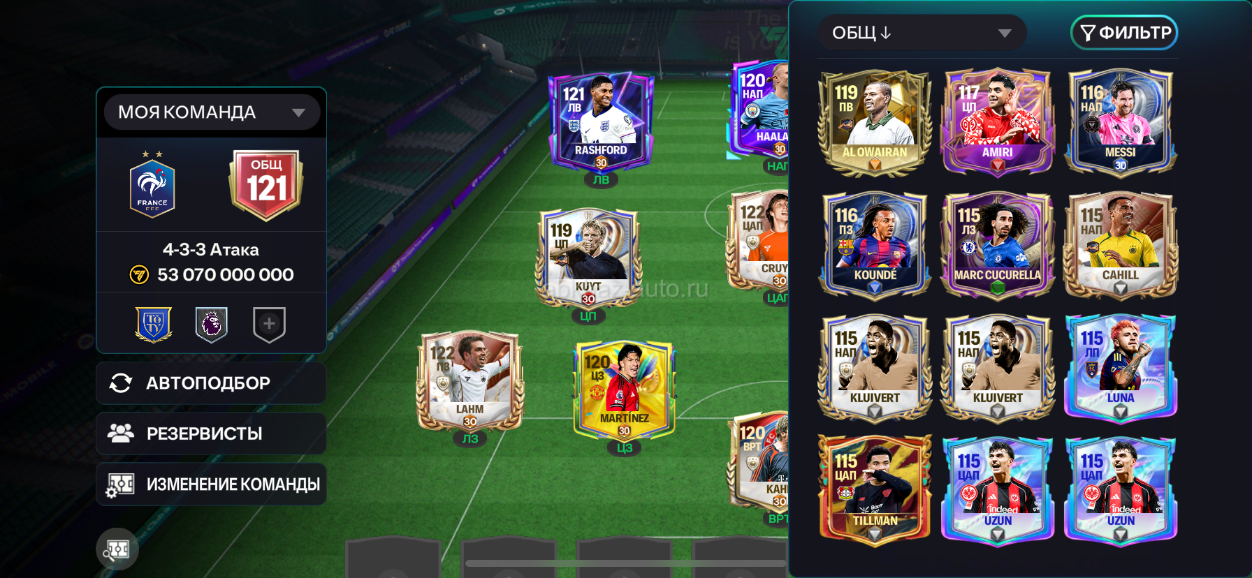Дополнительная информация: 121 овр почти все игроки на 5 ранге все фул вкачены Есть проливаемый игрок за 1,5милиарда