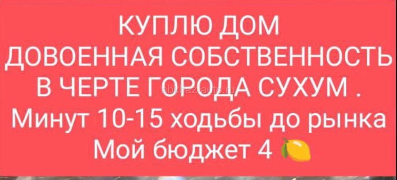 Дополнительная информация: Куплю дом в черте города Сухум. Минут 10-15 езды до рынка
