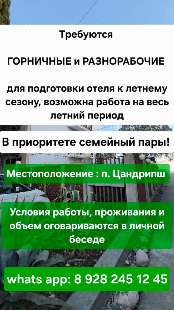 Требуются горничные и разнорабочие в отель в Цандрипш
