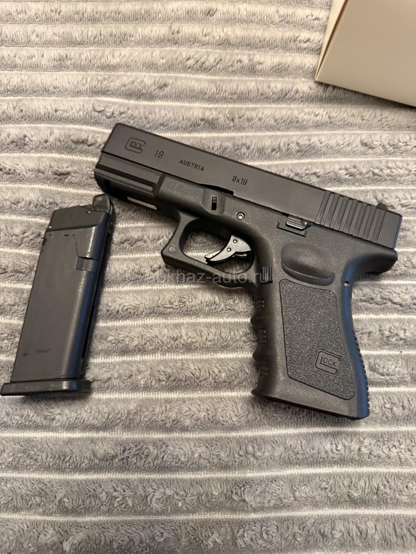 Дополнительная информация: Glock 19 gen 3 1/1 схож с боевым аналогом Заправляется Грин газом и патронами 6мм железные и пластиковые Имеет отдачу. Движется затвор. При опустошении магазина встает на затворную задержку Торга нет
