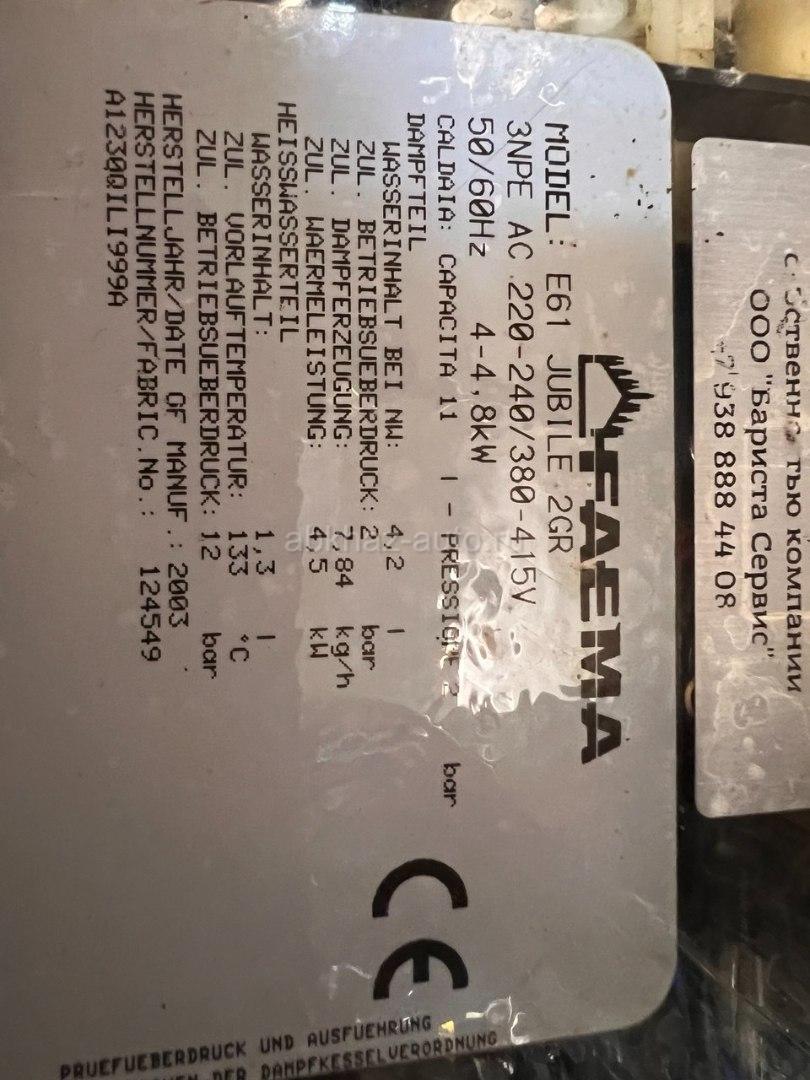 Дополнительная информация: Продам кофемашины Faema E61 Jubile и Faema E61 Legend обслужены, в хорошем состоянии, готовы к работе. Faema E61 Jubile - 250 тр Faema E61 Legend - 200 тр