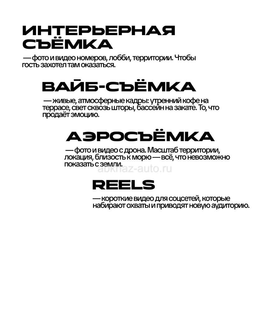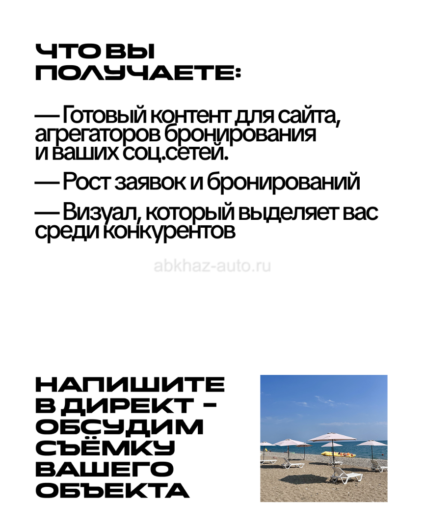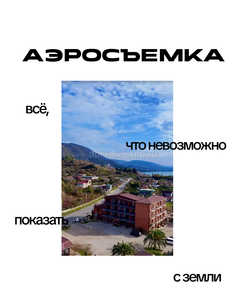 Дополнительная информация: ИНТЕРЬЕРНАЯ И АЭРОСЪЕМКА ДЛЯ ВАШЕГО БИЗНЕСА С КВАДРОКОПТЕРА портфолио в инст @visual.abkhazia Увеличьте продажи и бронирования на 30% за счёт съемки с воздуха! Уже пора готовится сезону 2026! Съемка с дрона в 4к, фото и видео. + дополнительно монтаж видео и обработка Обсуждается выезд в другие города. В стоимость входит горизонтальные видео (для сайтов), и вертикальные (для соц. сетей) в монтаже.