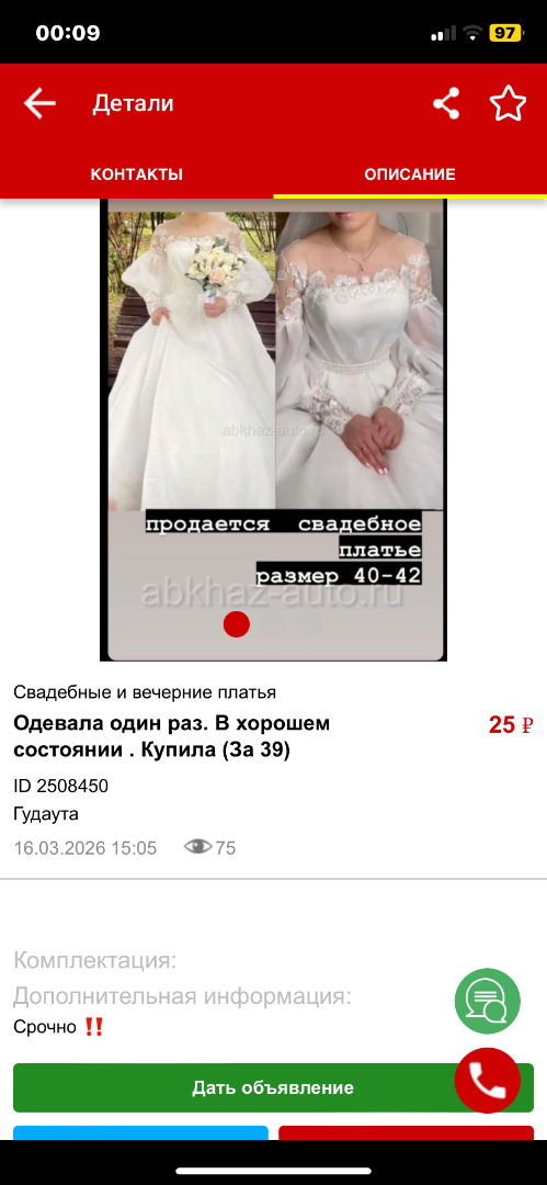 Дата подачи объявления: 21.03.2026 00.13