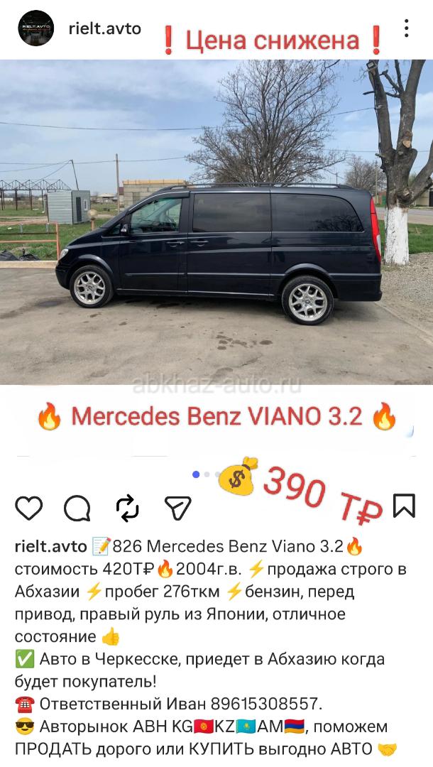 Двигатель: бензиновый, 3.2 л Трансмиссия: автоматическая Кузов: минивэн Цвет: черный Пробег: 276 км Год выпуска: 2004 Регион: Вся Абхазия Дополнительная информация: После града кузов побит. 📝 Mercedes Benz Viano 3.2🔥 стоимость 390Т₽🔥2004г.в. ⚡продажа строго в Абхазии ⚡пробег 276ткм ⚡бензин, перед привод, правый руль из Японии, отличное состояние 👍 ✅ Авто в Черкесске, приедет в Абхазию когда будет покупатель! ☎ Ответственный Иван 89615308557