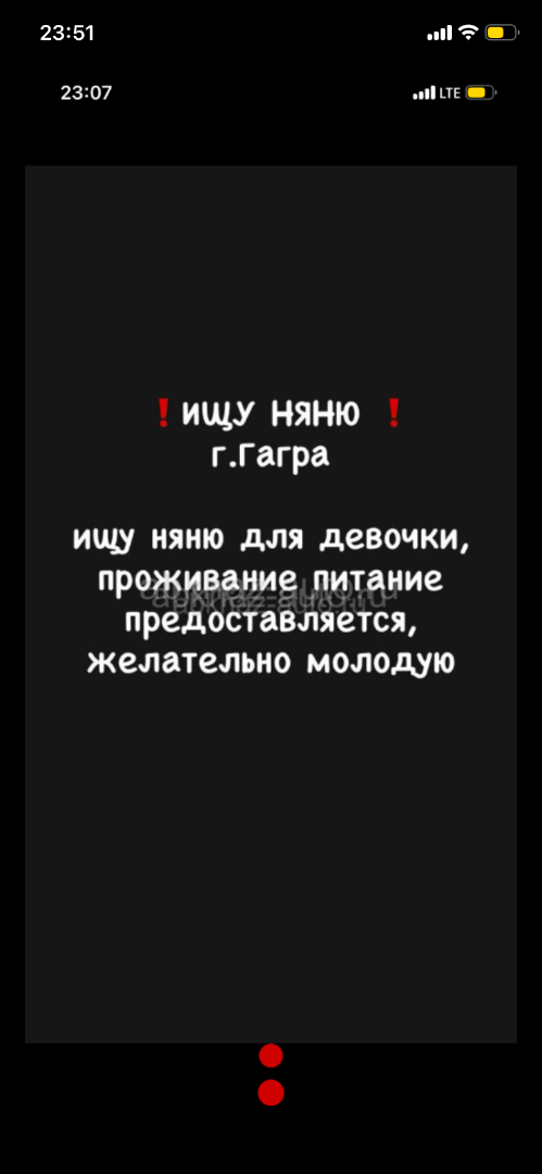 Дополнительная информация: Ищу молодую адекватную няню, жильё питание предоставляется 9487600 вотцап