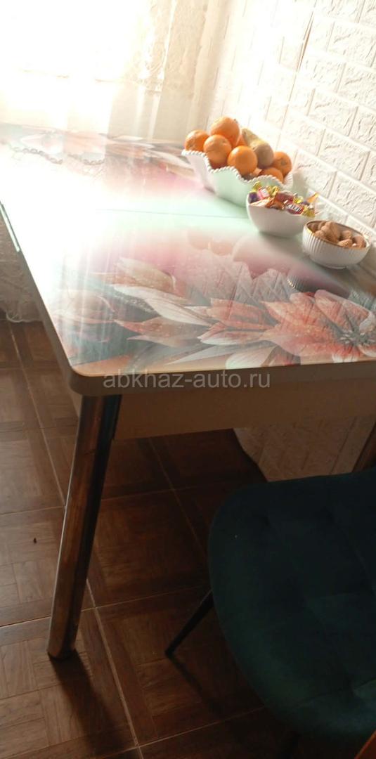 Дополнительная информация: Продаю кухонный ,стеклянный стол,с цветочным орнаментом,в закрытом виде 1.30,в открытом 1.70 Состояние хорошее