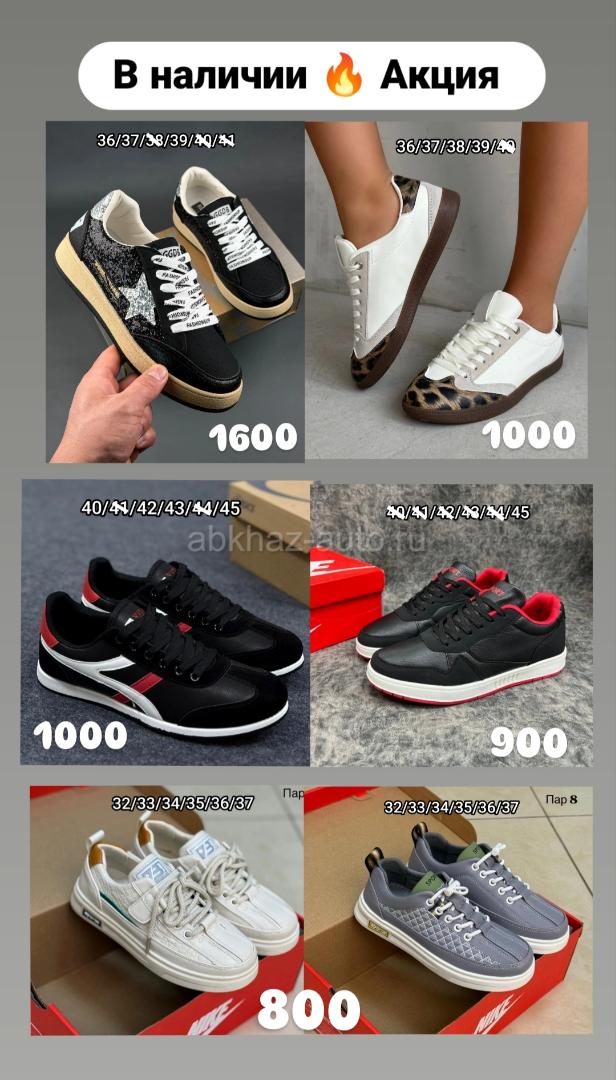 Дополнительная информация: В наличии мужская, женская и детская обувь на них сейчас действует акция успехи приобрести размера написано на фотографиях. По всем вопросам обращайтесь по номеру телефона +7(940)915-59-06 г.Сухум