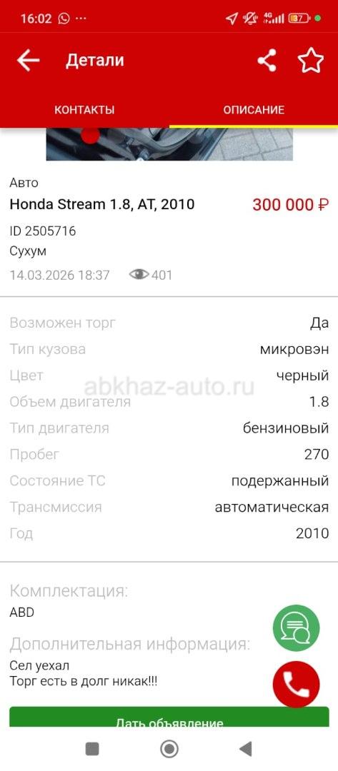 Двигатель: бензиновый, 1.8 л Трансмиссия: автоматическая Кузов: универсал Цвет: черный Пробег: 180000 км Год выпуска: 2010 Регион: Сухум Дополнительная информация: Машина в хорошем техническом состоянии..Все расходники и ходовая поменянна . Дополнительная информация по тел..+79407221154