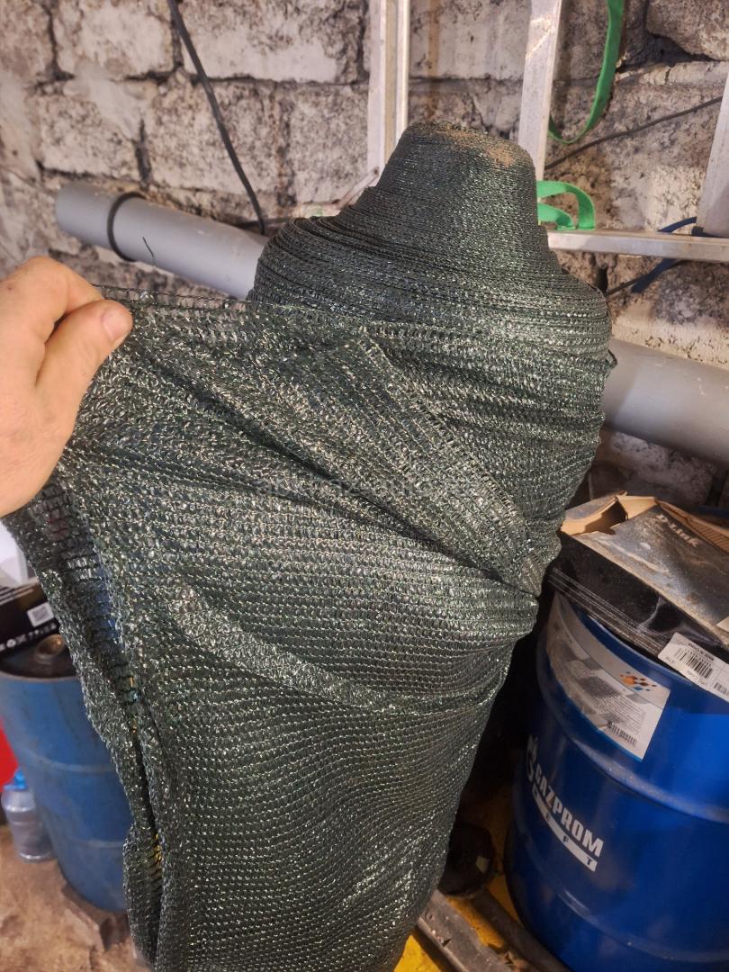 Дополнительная информация: сетка маскировачная длина 100м высота 4м можно в 2 слоя высота получится 2 метра полное темнение новая в использование не была