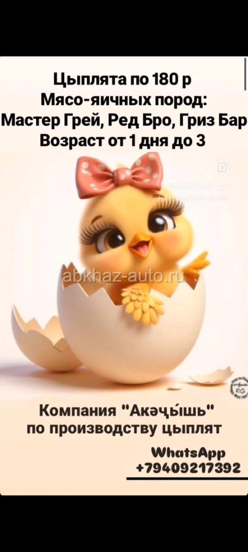 Дополнительная информация: Маленькие пушистики мясо-яичные , Мастер Грей, Гриз Бар, Ред Бро, а также Плимутрок . Возраст от 1 до 3 дней , цена 180р , Обращайтесь по номеру+79409217392