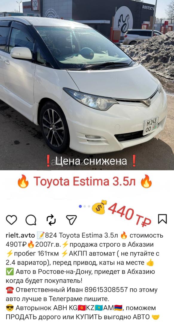 Двигатель: бензиновый, 3.5 л Трансмиссия: автоматическая Кузов: минивэн Цвет: белый Пробег: 162 км Год выпуска: 2006 Регион: Вся Абхазия Дополнительная информация: Тойота Естима 2006 3.5л Пробег 161500 км Катализатор на месте. Поставил с переди двух поршневые супорта , перфорированные тормозные диски , колодки керамика . Масло каждые 8000 км замена ДТП не было. Линзы стоят свет бомбовый просто. Диски R 18 Есть притертость по обвесу. Полноценный автомат, передний привод. Масло в коробке менял 11000 назад. Автомат 6 передач. Камеры 360° Левая задняя дверь электро. Задние двери с доводчиками.