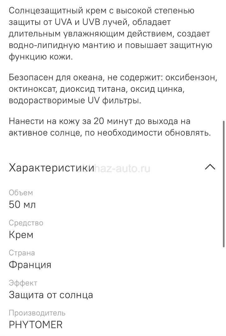 Солнцезащитный крем phytomer SPF50+
