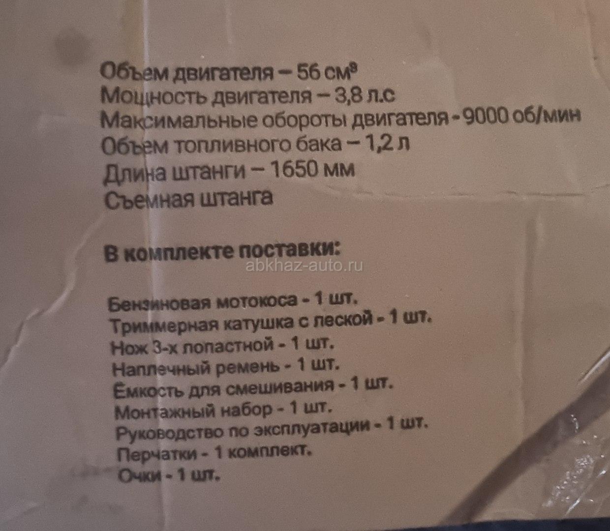 Дополнительная информация: 3.8 л.с 9000 об/мин Объем двигателя 56 см3. В комплекте две катушки с леской!