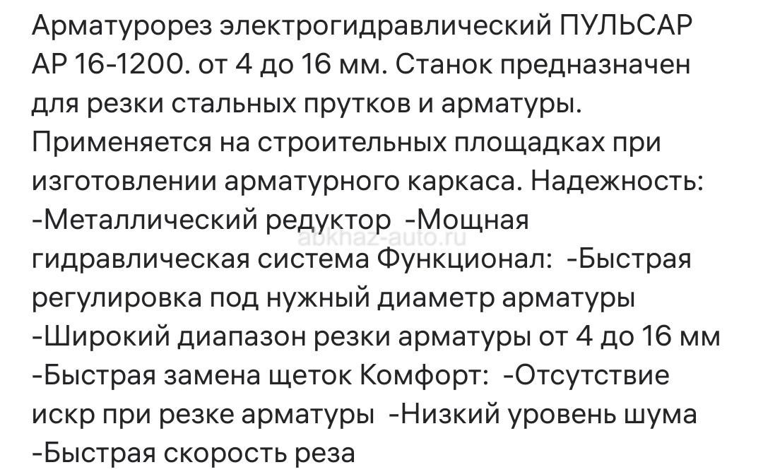 Дополнительная информация: Сдается в аренду арматурорез . Один день - 3000 р . Режет от 4 до 16 мм . Писать заранее на Вотсап +79407171922