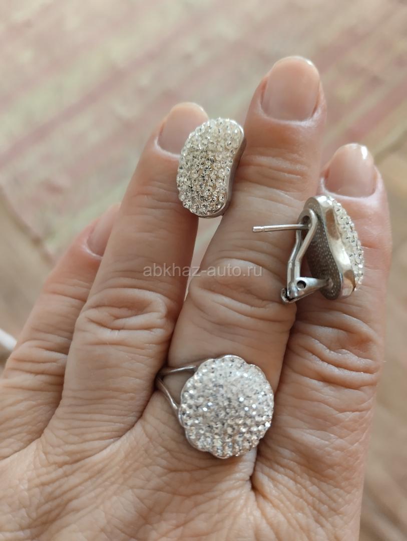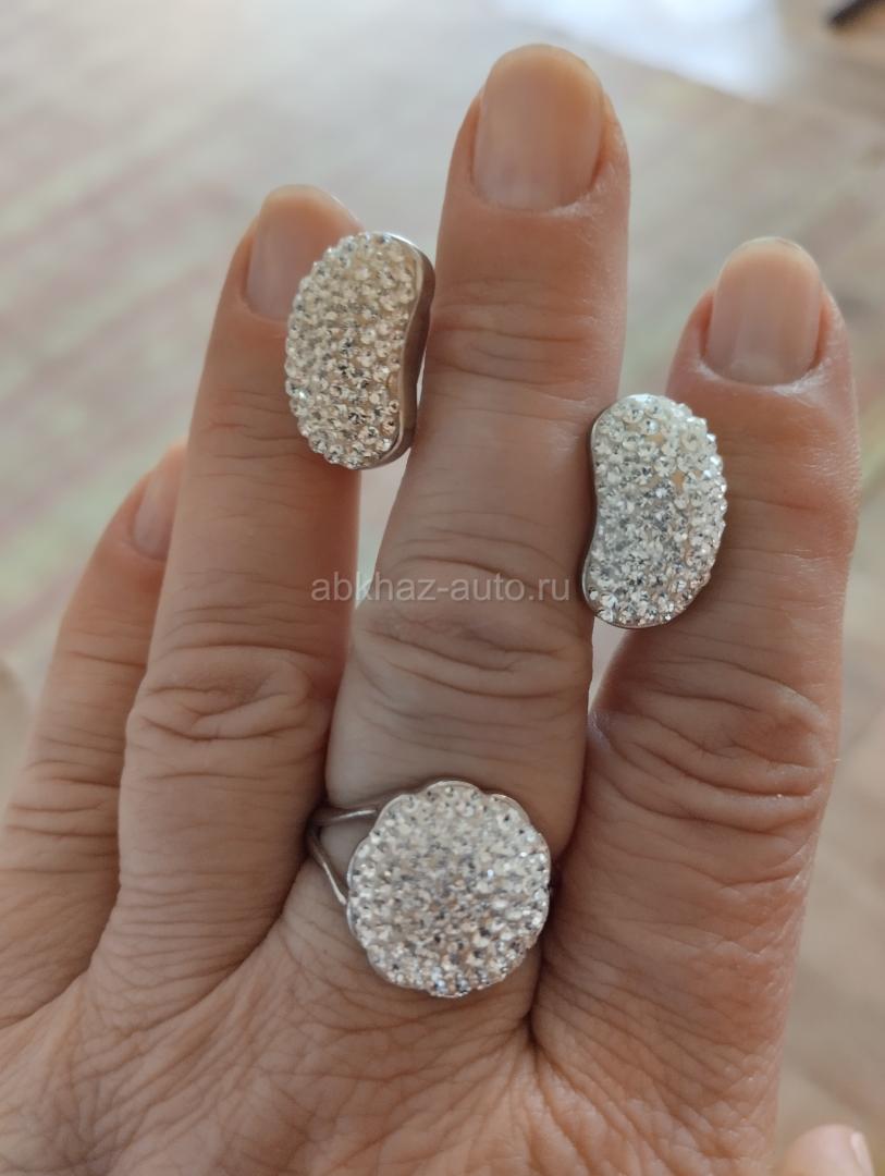Кольцо и серьги из серебра с кристаллами Сваровски